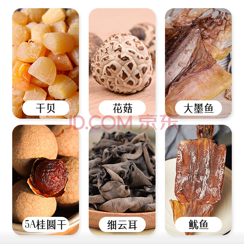 商品相册:绿帝 山海臻品礼盒鱿鱼墨鱼干贝桂圆花菇细云耳年味大礼包1838g第