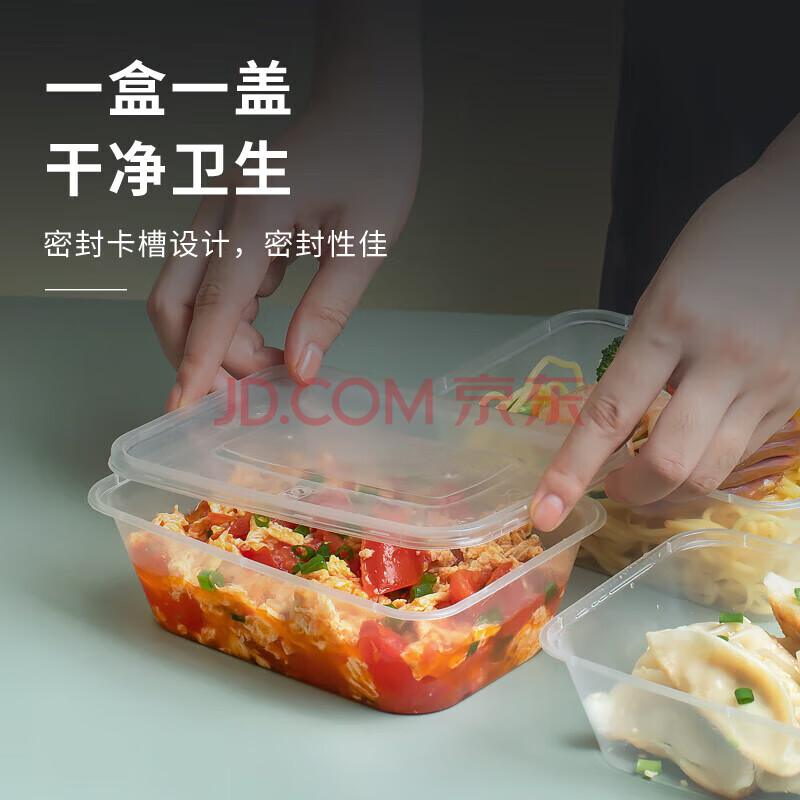 商品相册:特美居饭盒一次性餐盒食品级打包盒带盖可微波炉加厚方形1000型300套第