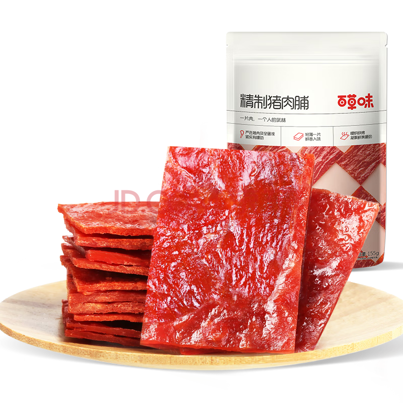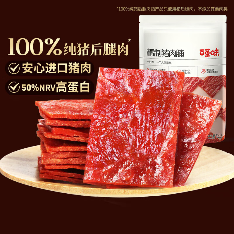 商品相册:百草味精制猪肉脯155g/袋肉干肉脯休闲零食靖江风味特产第