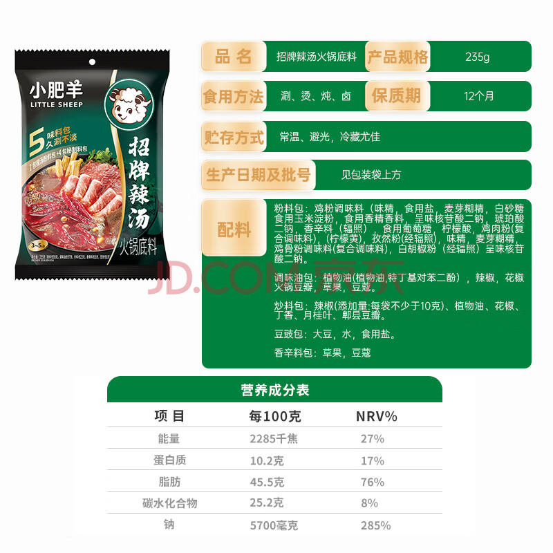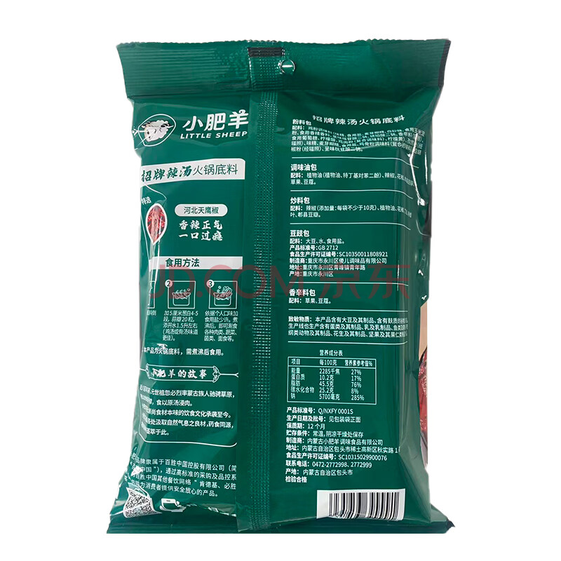 商品相册:小肥羊火锅底料调料香辣浓郁 分包式辣汤 235g 招牌辣汤第