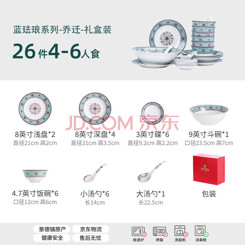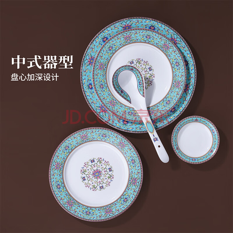 商品相册:景德镇(jdz)陶瓷餐具整套中式家用碗碟套装乔迁新居礼品高档大气实用蓝珐琅彩第