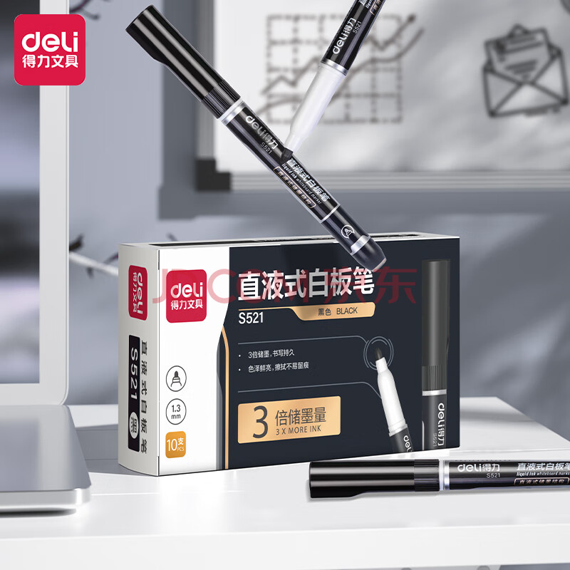 商品相册:得力(deli) 细头直液式可擦白板笔 办公教学会议白板笔 办公用品 黑色 S521黑第