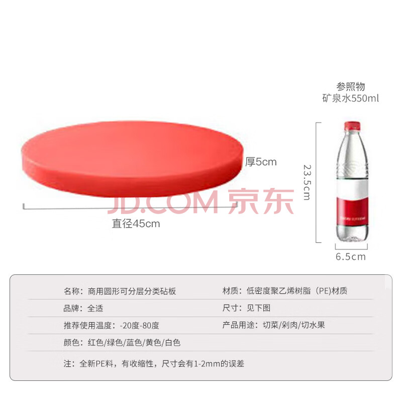 商品相册:全适45*5cm圆形可分层PE切肉切菜板剁骨砧板肉墩菜墩塑料砧板案板红色第