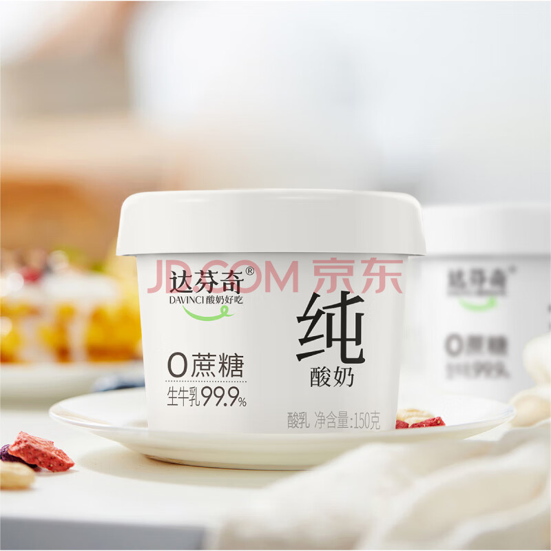 商品相册:达芬奇(DAVINCI)纯酸奶原味150g*2杯低温酸奶 0代糖 无蔗糖 健身代餐第1张/共6