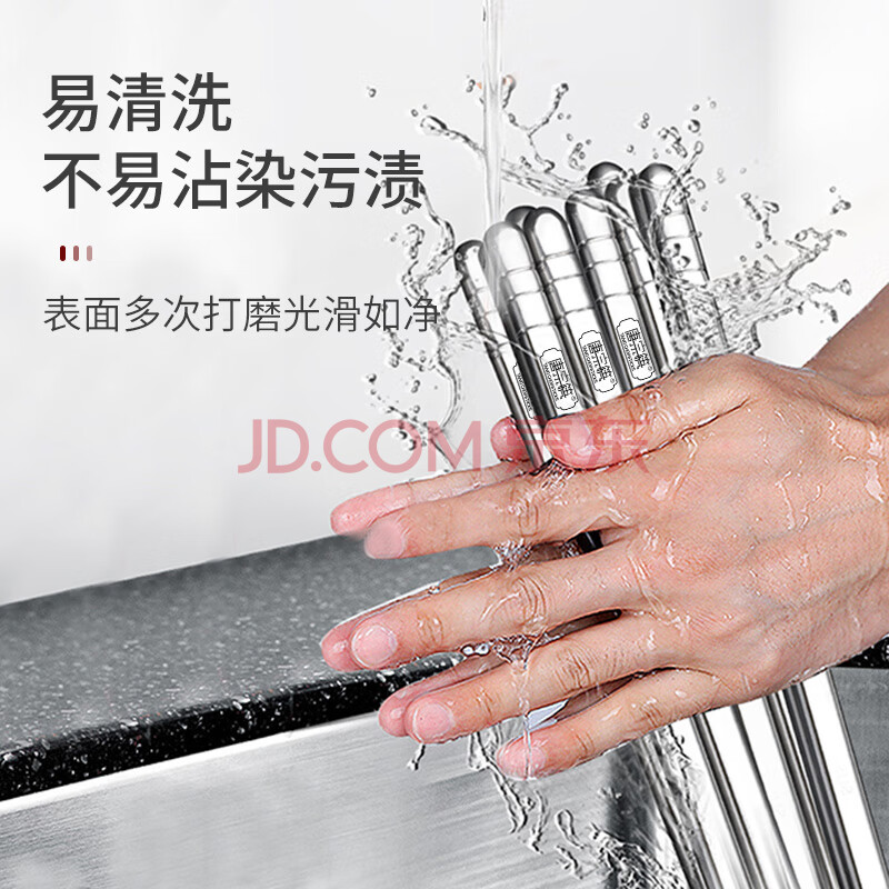 商品相册:唐宗筷 304不锈钢筷子10双装 家用商用 耐高温防滑防烫耐摔餐具套装第