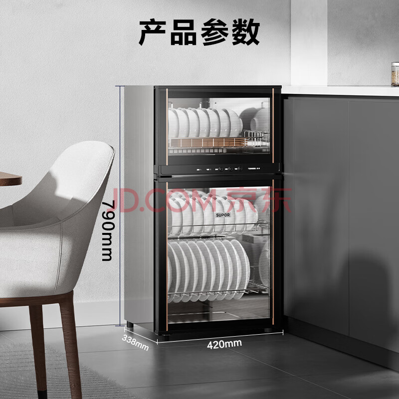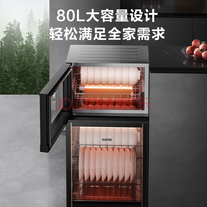 商品相册:苏泊尔(SUPOR)消毒柜立式家用全腔二星大容量80L轻触式上下分层镜面反射工艺RLP80G-L05第