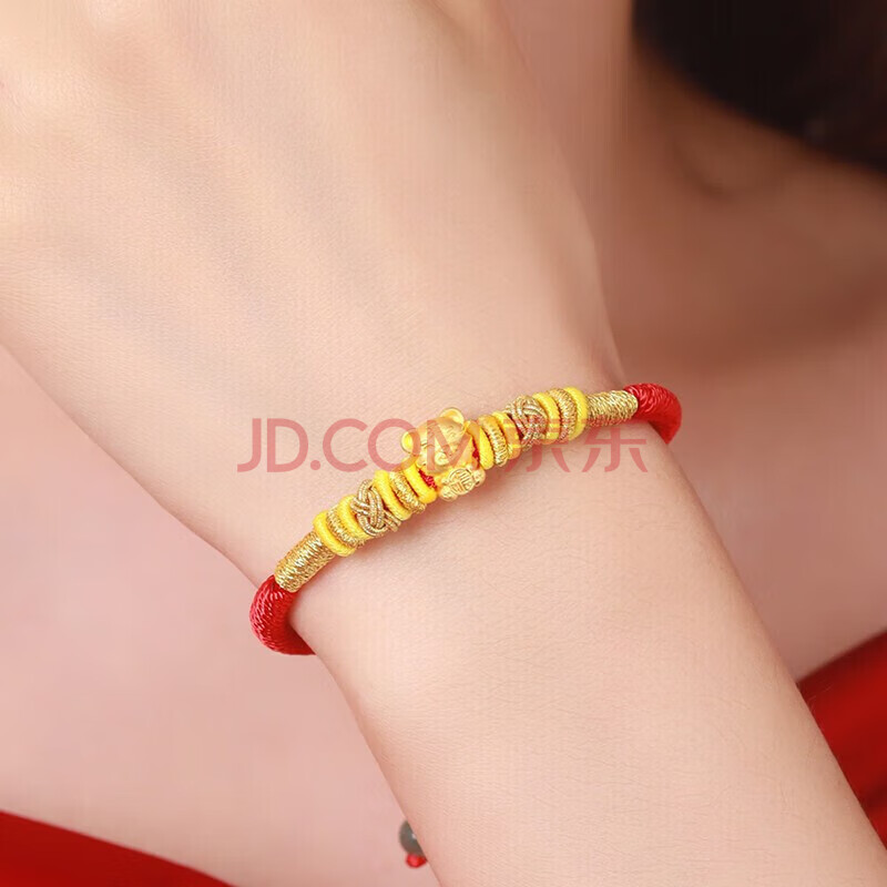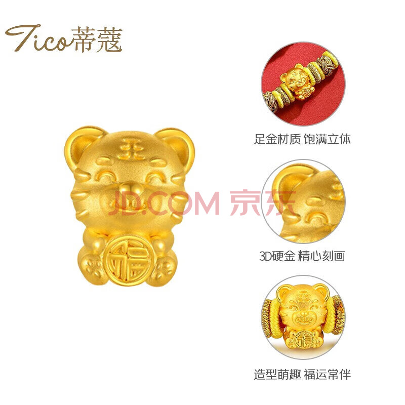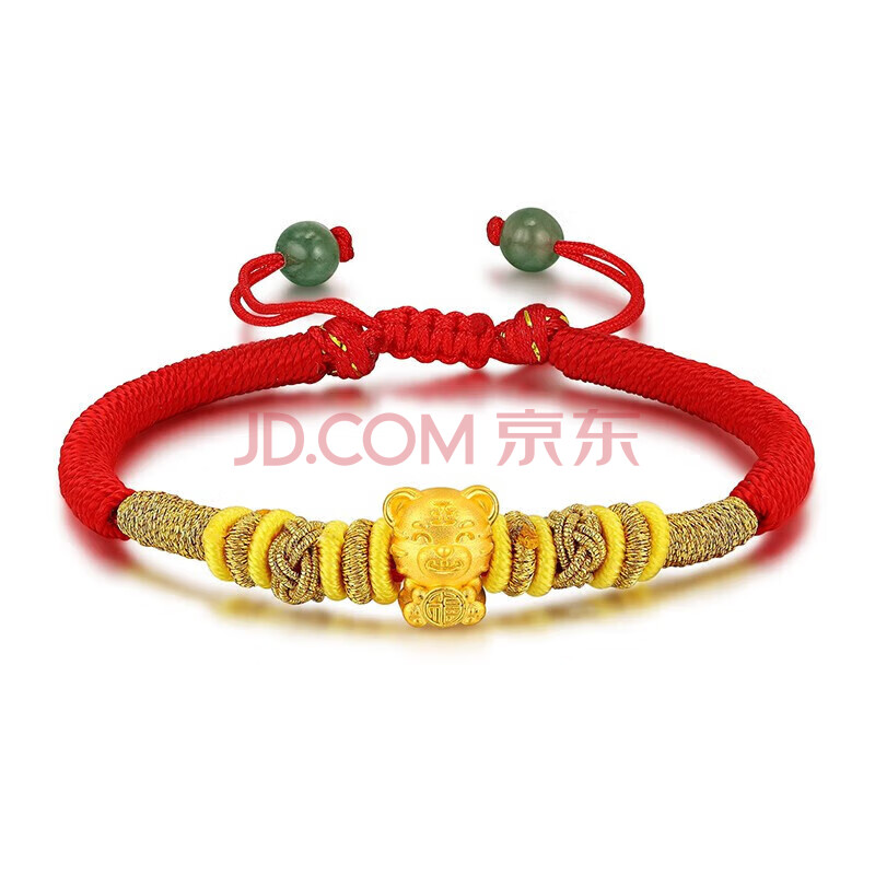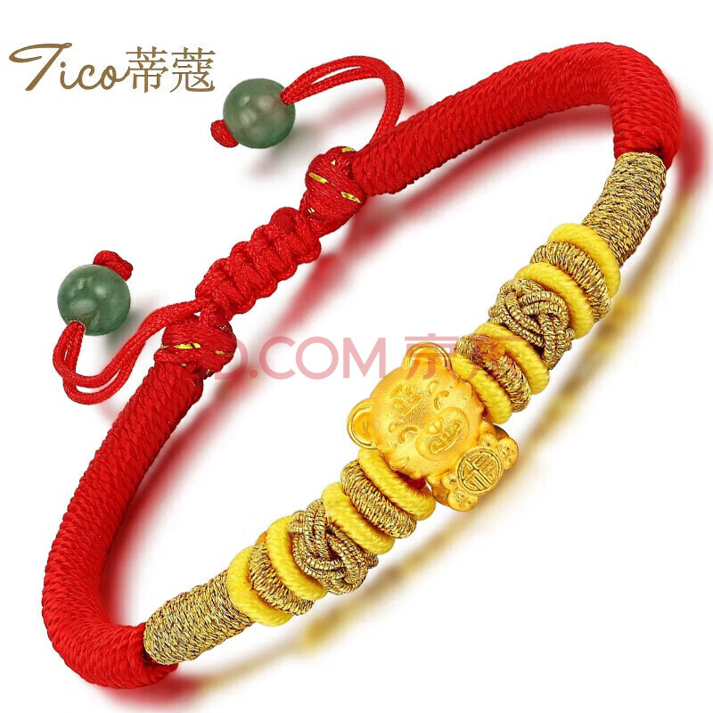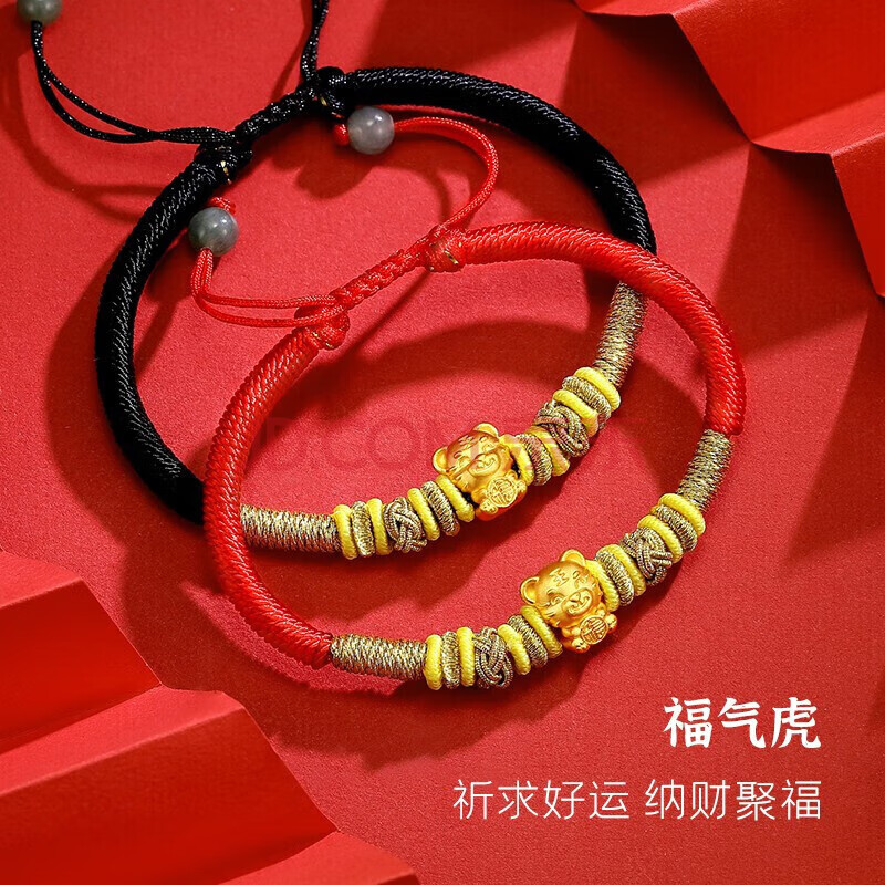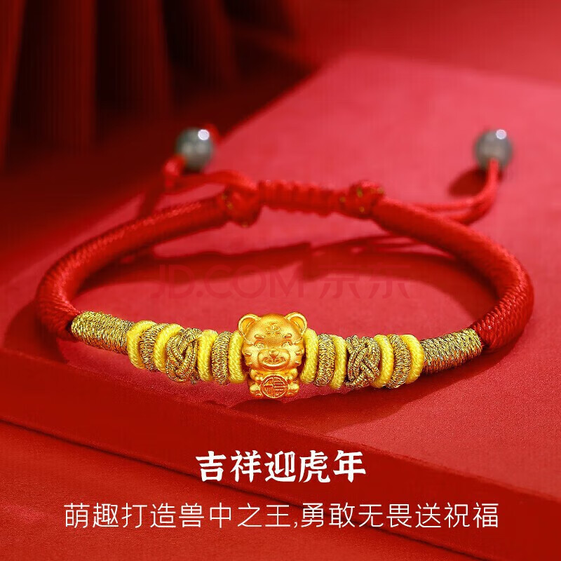 商品相册:蒂蔻(Tico)生日礼物本命年虎年足金报福虎生肖黄金转运珠手链金虎编织红绳第