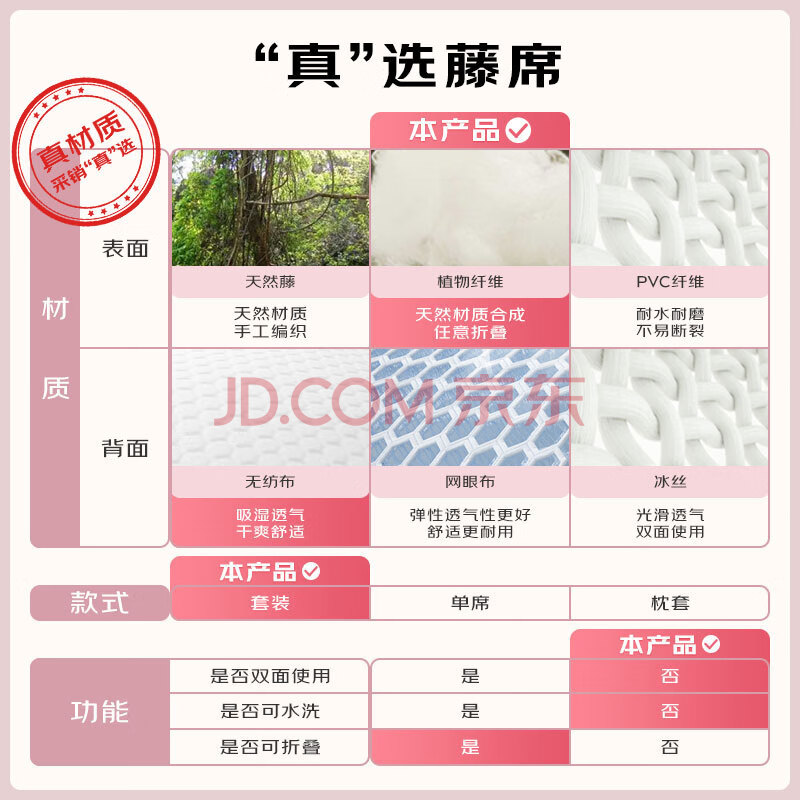 商品相册:老席匠芫藤席凉席双人三件套150*200【可折叠】第