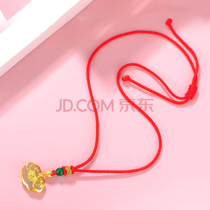 商品相册:Lossot福禄葫芦长命锁金镶玉吊坠小孩款平安扣黄金吊坠宝宝满月周岁礼物第