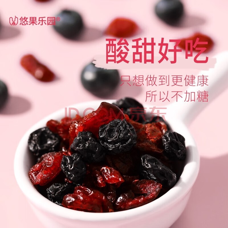 商品相册:悠果乐园每日蔓越莓干蓝莓干混合果干600g无添加剂礼盒休闲零食果干第1张/共8