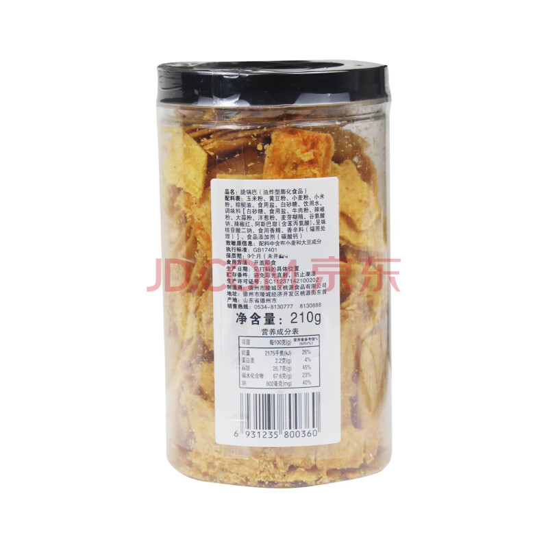 商品相册:无名小卒 脆锅巴(原味)210g *2罐酥脆薯片休闲零食 第
