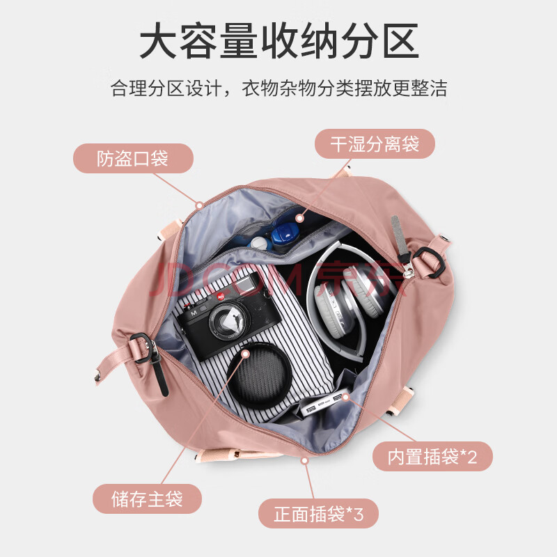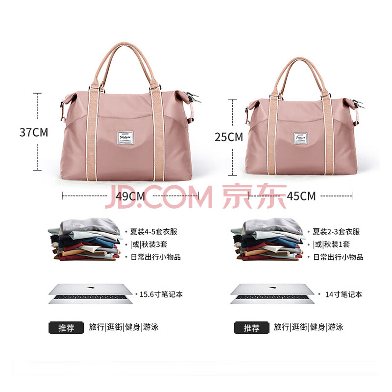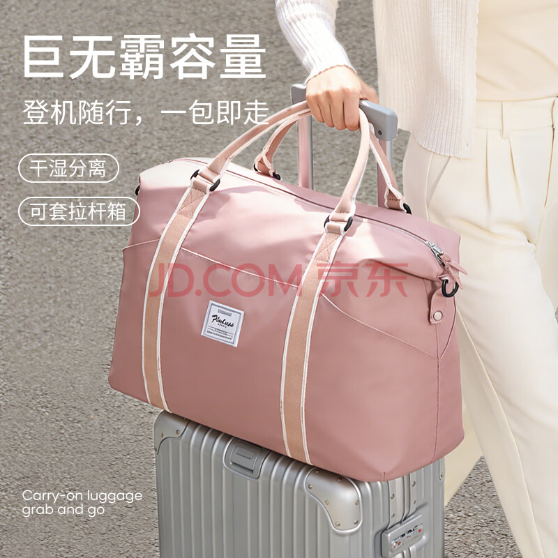 商品相册:Landcase 旅行包女手提大容量行李包健身包短途出差旅游袋 4095粉色大号第