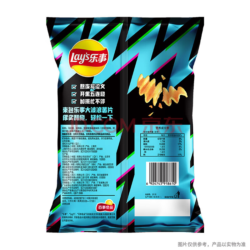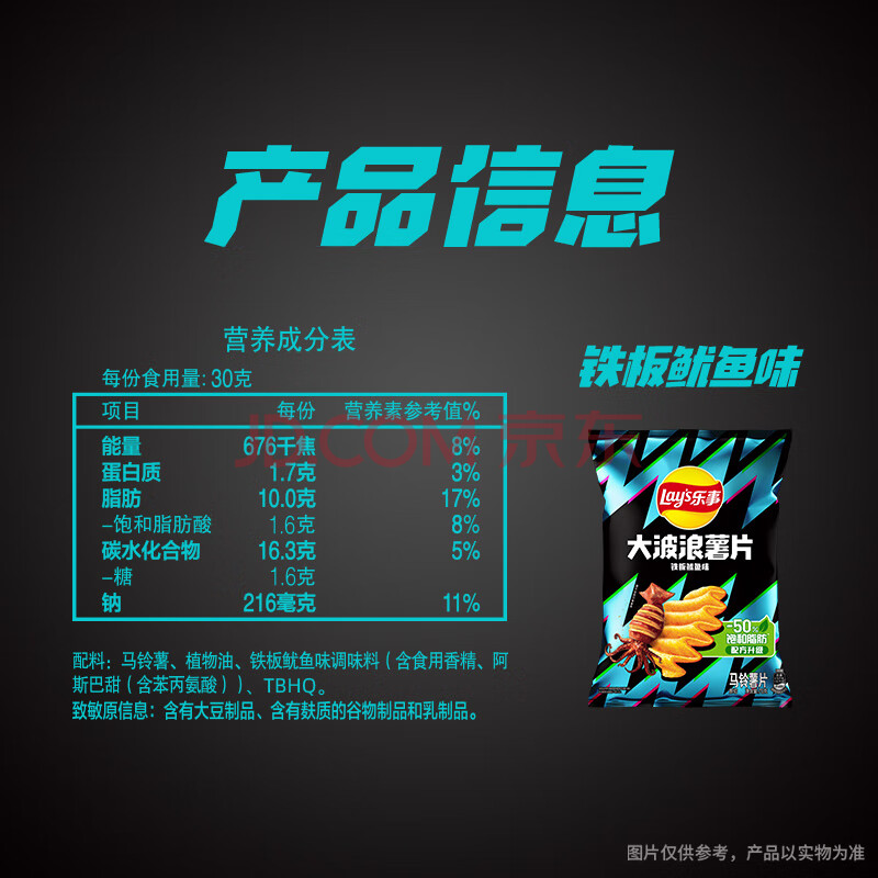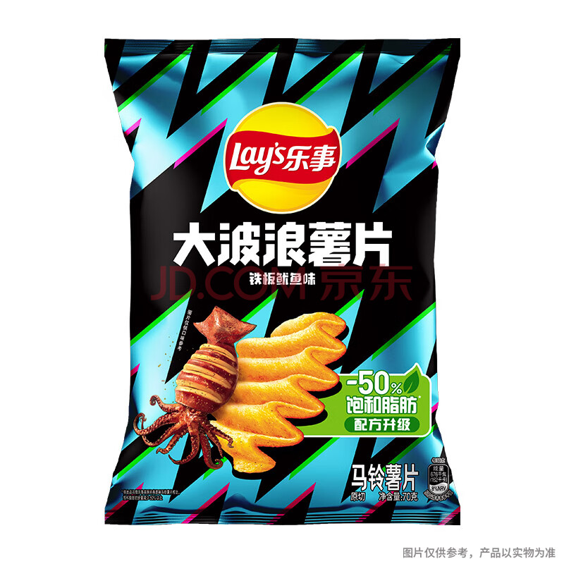 商品相册:乐事(Lay's)大波浪薯片 铁板鱿鱼味 70g 零食 休闲食品第
