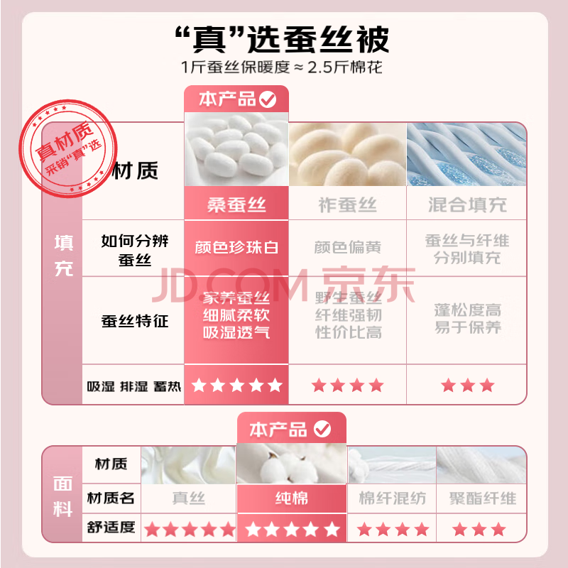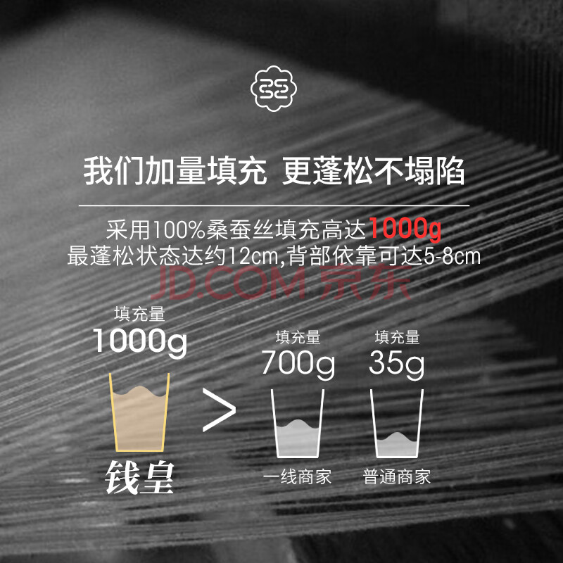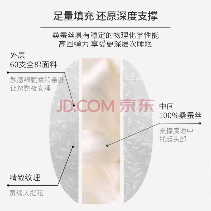 商品相册:钱皇芯芯相印枕芯100%桑蚕丝 全棉面料蚕丝净重2斤 48*75cm 单只第