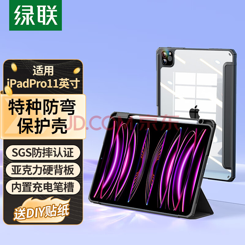 商品相册:绿联适用iPad pro保护壳带笔槽11英寸保护套2022/2021/2020款通用苹果平板电脑全包防弯防摔壳第1张/共9