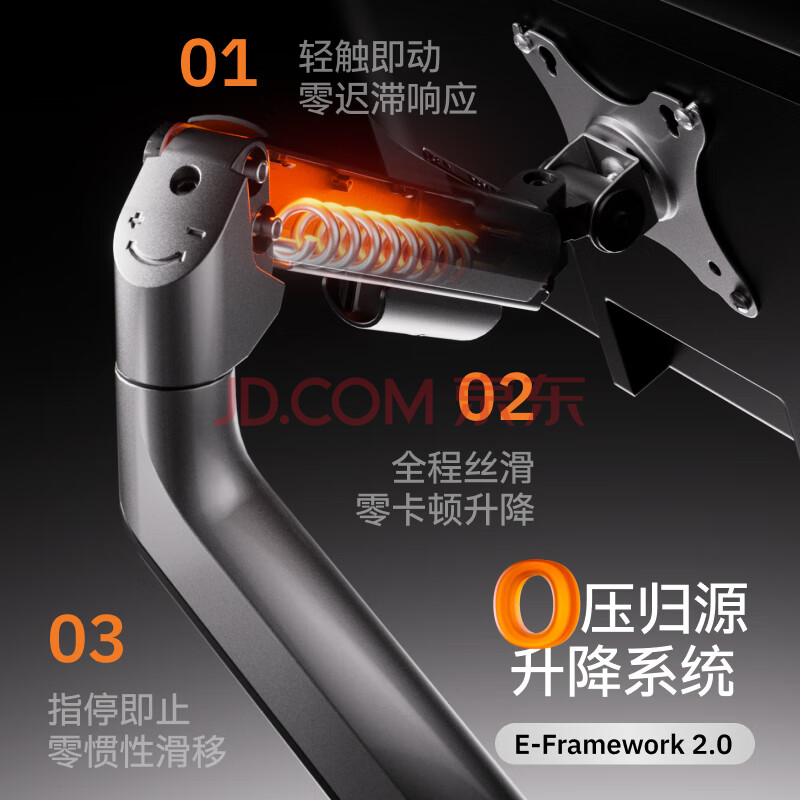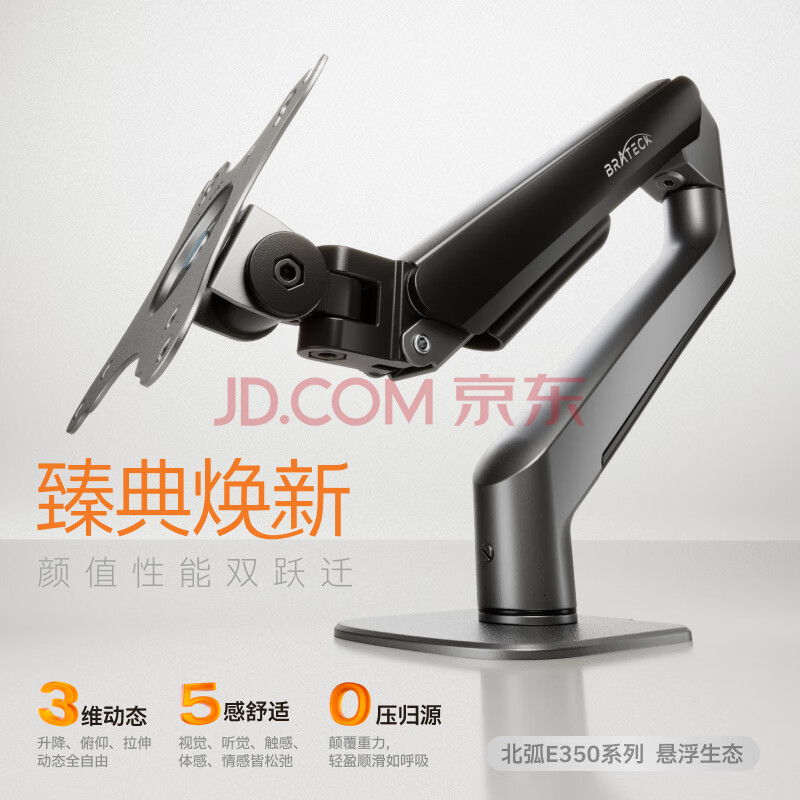 商品相册:Brateck北弧 显示器支架 机械臂 电脑支架桌面夹式底座 屏幕升降悬空托增高架E350灰17-32吋 适配卓威电竞第