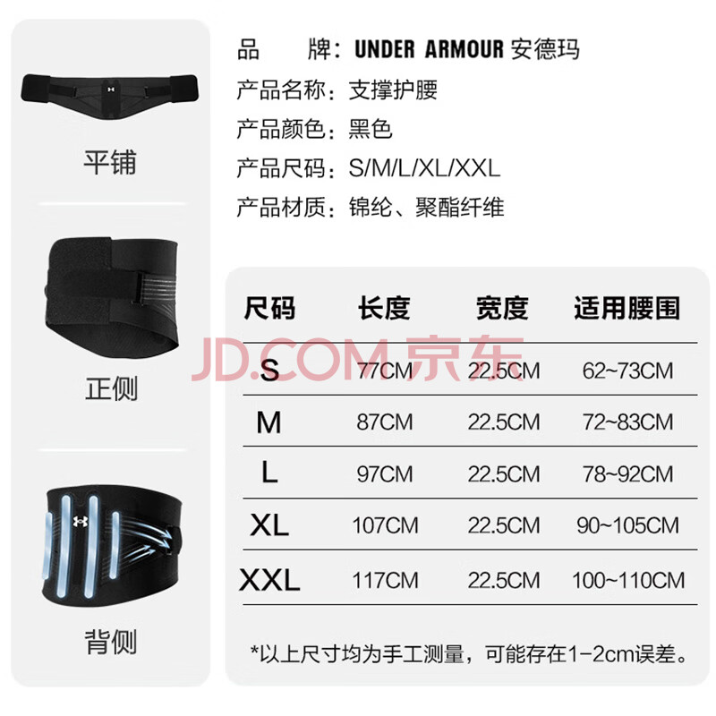 商品相册:安德玛(Under Armour)护腰带保暖收腹带 跑步健身男女护具腰垫支撑腰托腰封 黑色S码第