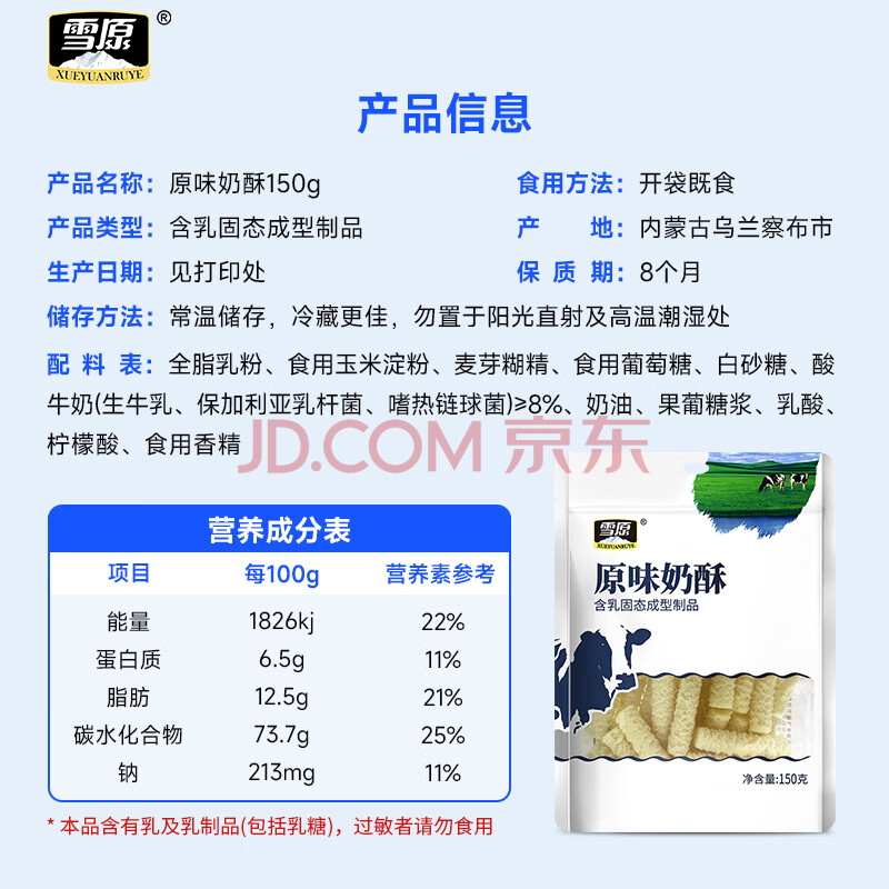 商品相册:雪原原味奶酥150g 奶酪条 牛奶条 奶酪棒 内蒙古特产零食第1张/共8