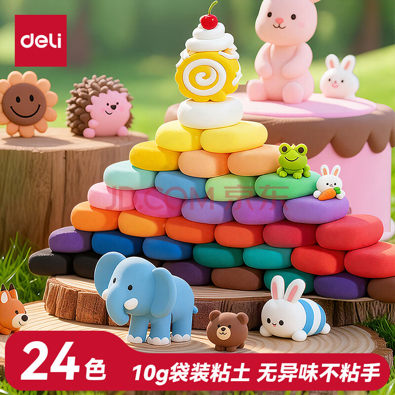 商品相册:得力24色超轻粘土彩泥橡皮泥黏土美术手工DIY玩具开学文具太空沙10g/袋 儿童生日男女孩第