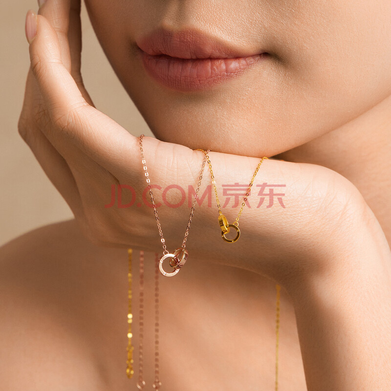商品相册:周六福环环相扣18K金项链生日礼物送女友 红18K金约0.85g-40+5cm第