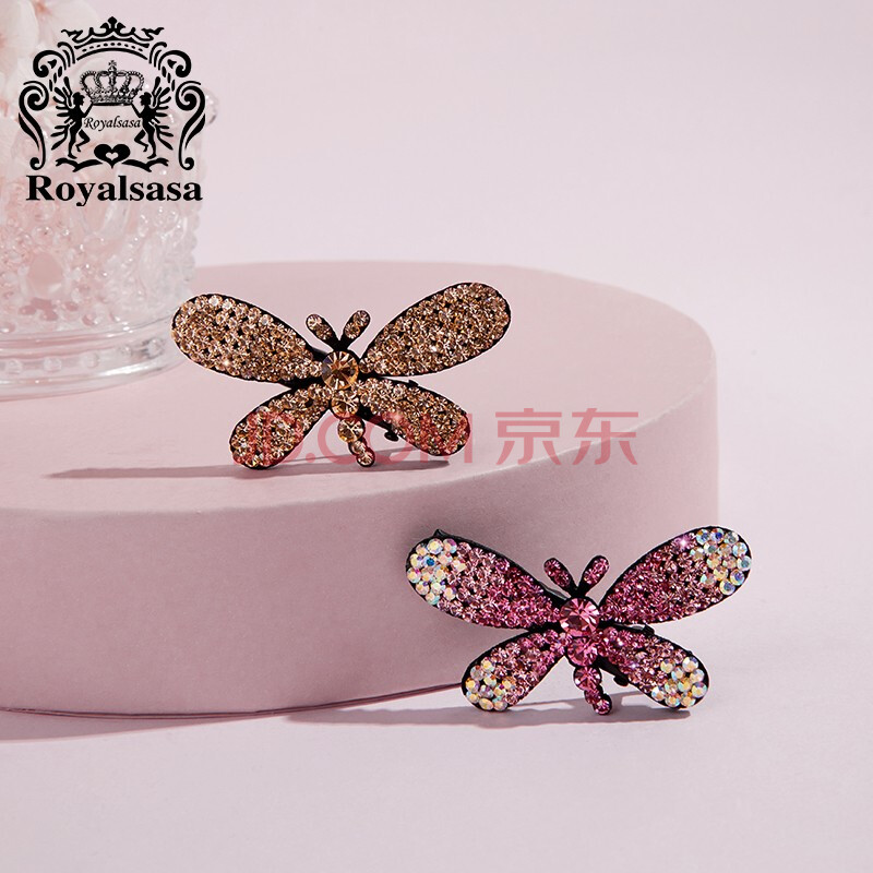 商品相册:Royal sasa皇家莎莎发夹发饰发卡蝴蝶闪钻边夹刘海夹2件套装水钻对夹顶夹第1张/共6