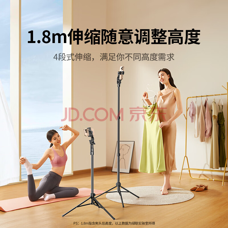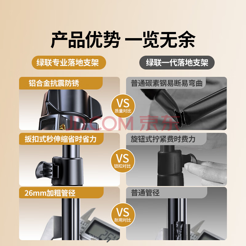 商品相册:绿联手机支架落地直播支架自拍杆三脚架多功能便携视频录制户外立式俯拍伸缩支架铝合金适用苹果17小米第