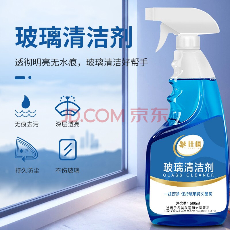 商品相册:桂枫 玻璃水清洁剂擦玻璃神器卫浴水龙头瓷砖去渍污垢清洗剂500ml*1瓶第