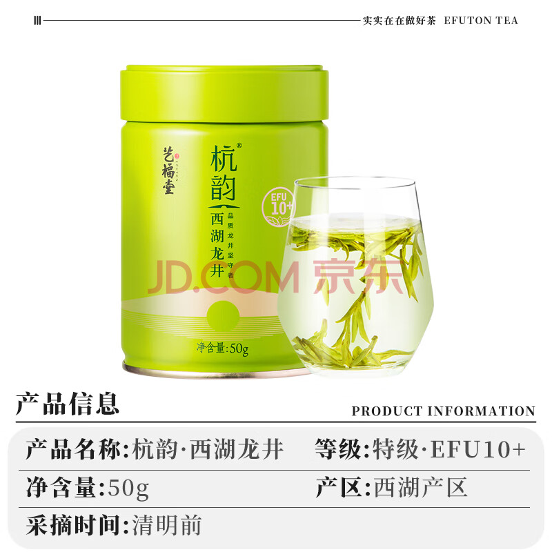 商品相册:艺福堂绿茶【2026新茶】杭州西湖龙井特级50g 充氮锁鲜罐装自喝送礼茶叶第