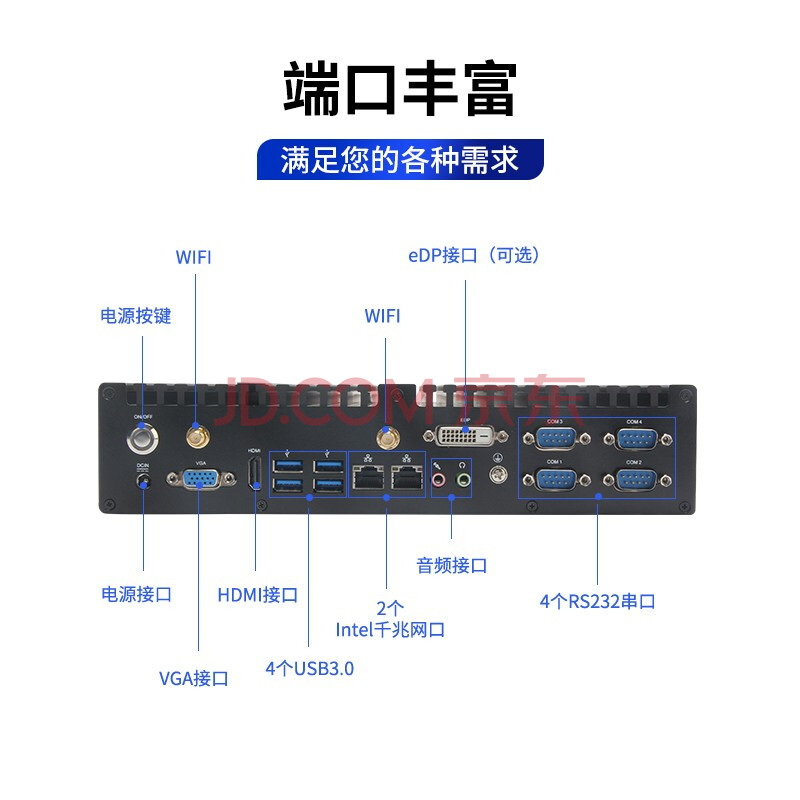 商品相册:Dongtintech东田酷睿8代嵌入式无风扇迷你工控机主机服务器电脑DTB-3042-H310/G5400 4G/128GSSD第