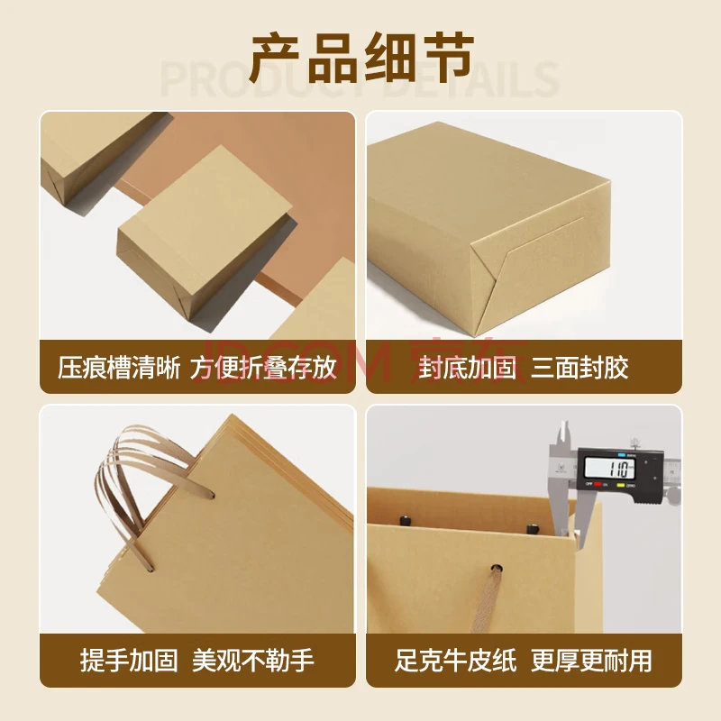商品相册:登比牛皮纸袋礼品包装袋子茶叶手提食品打包袋生日妇女节礼物伴手礼袋第1张/共5