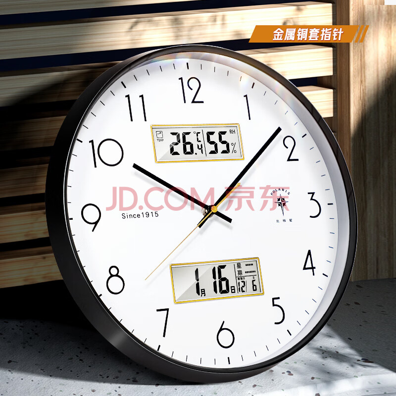 商品相册:北极星(POLARIS)挂钟客厅钟表家用时尚简约时钟万年历现代石英钟挂表30cm黑色第