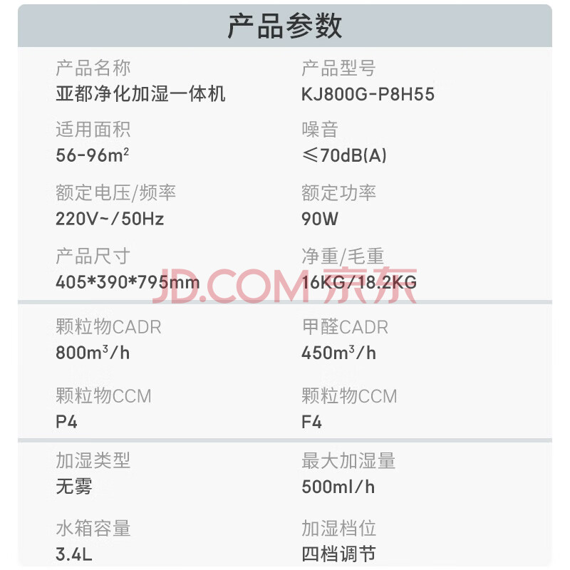 商品相册:亚都(YADU)空气净化器除甲醛雾霾 无雾加湿净化器一体 VOC数值显示 办公室卧室家用 KJ800G-P8H55第