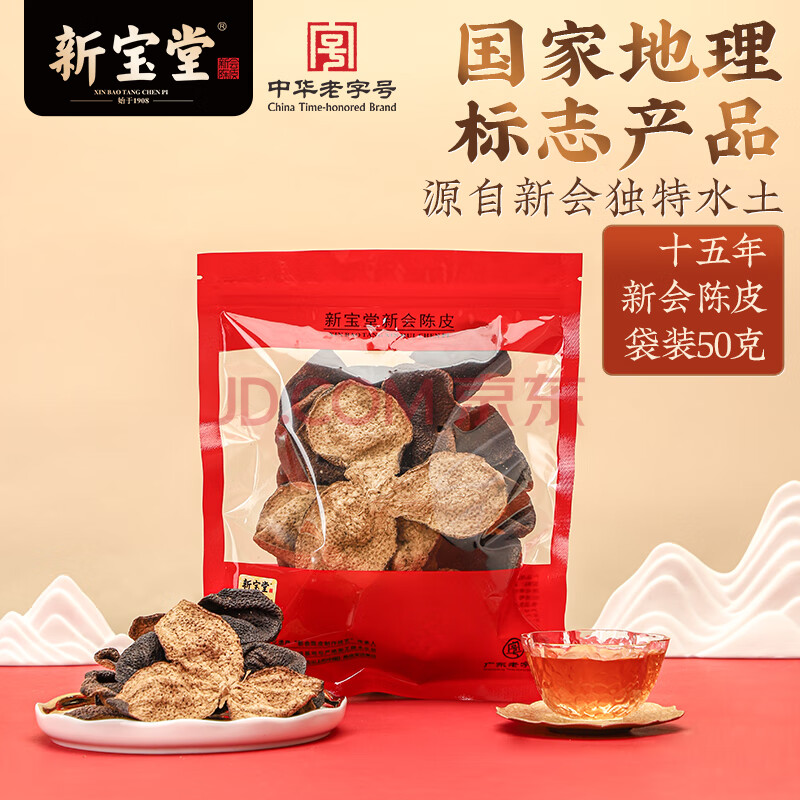 商品相册:岭南新宝堂陈皮十五年新会陈皮干广东送礼特产袋装50克第