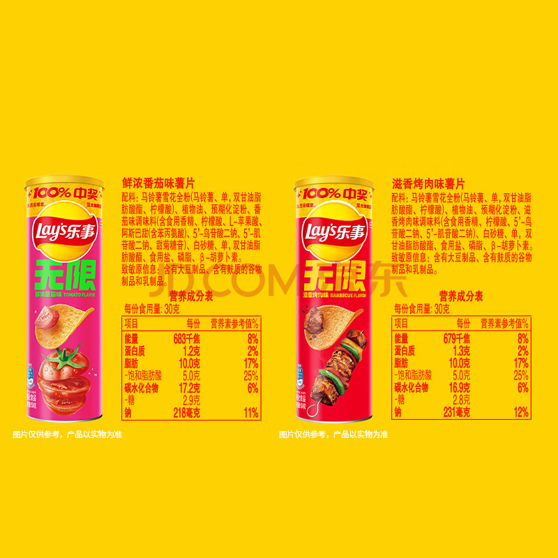 商品相册:乐事(Lay's)无限薯片 鲜浓番茄味104g 罐装 膨化食品 零食 休闲食品第