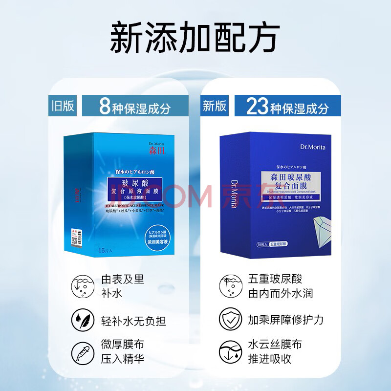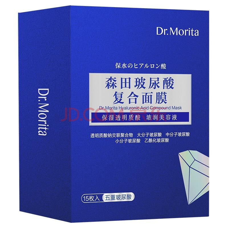 商品相册:森田五重玻尿酸面膜 复合原液女面膜补水呵护敏皮提亮肤色30gx15片/盒第