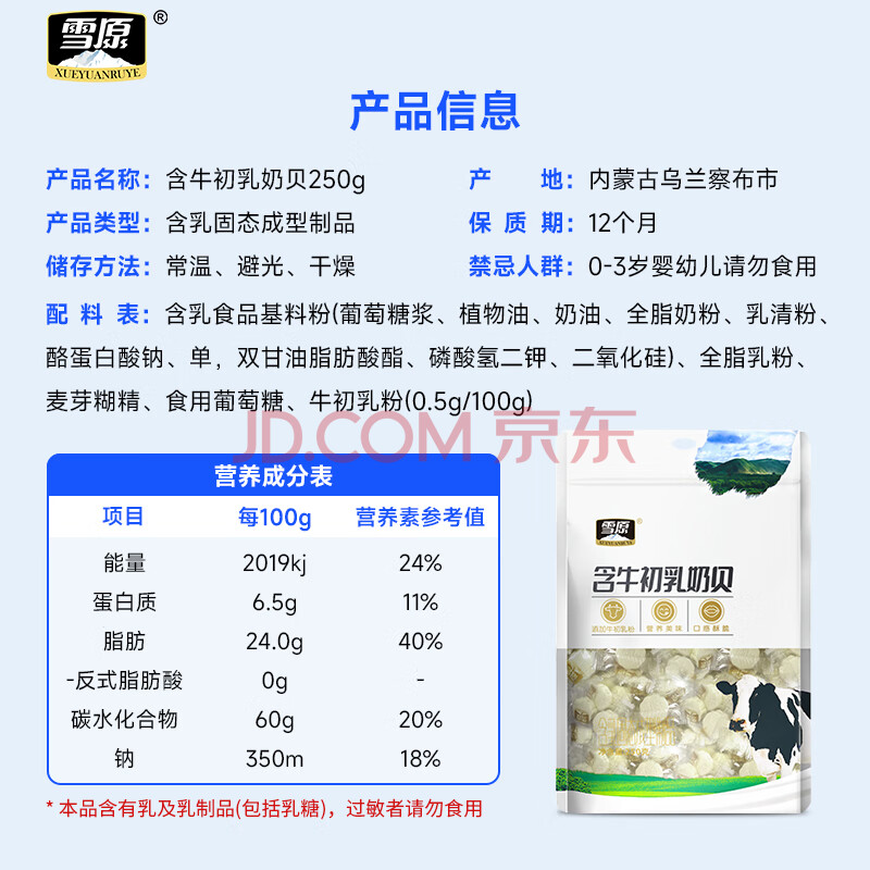 商品相册:雪原奶片 牛初乳奶贝250g 内蒙古特产办公室休闲零食第