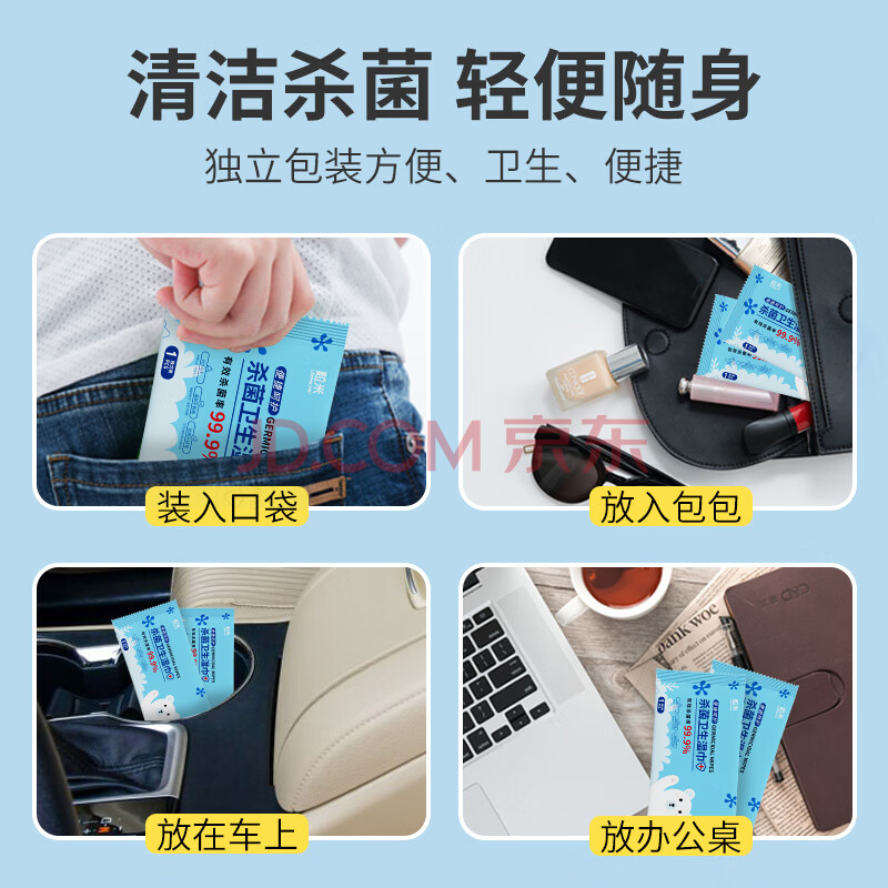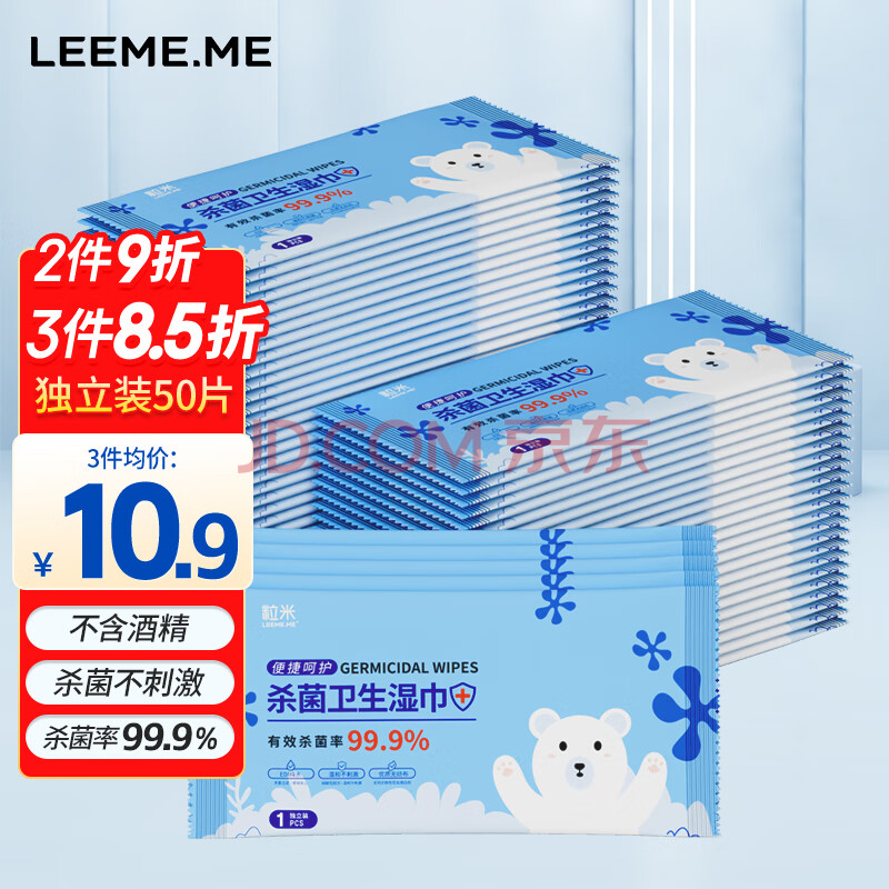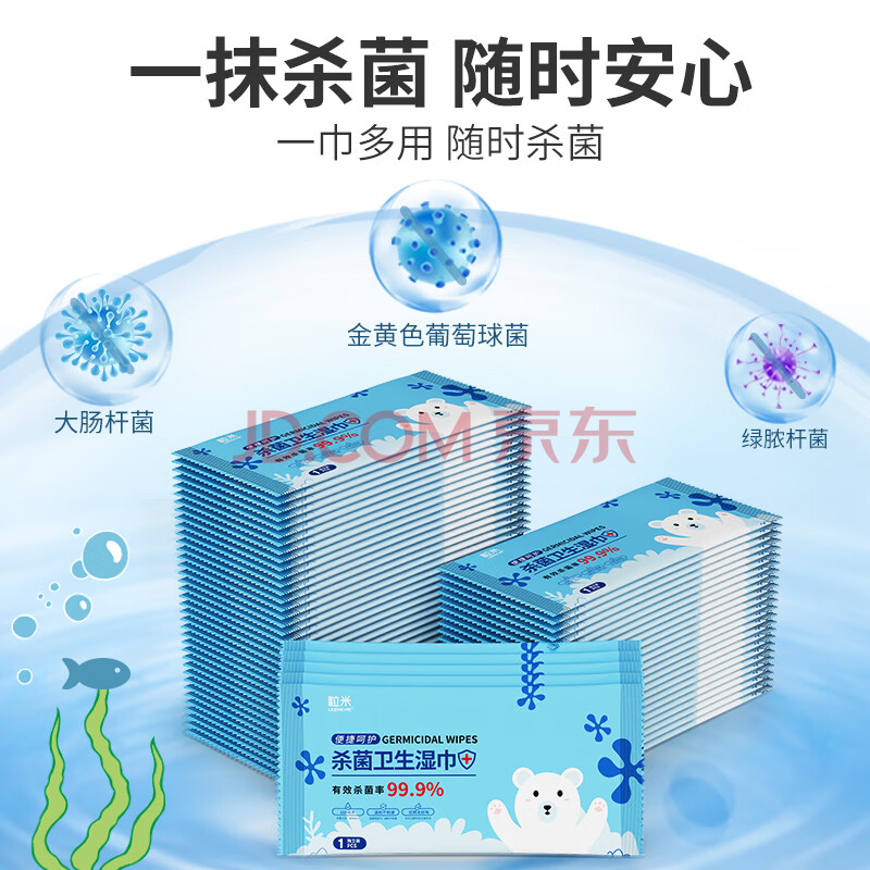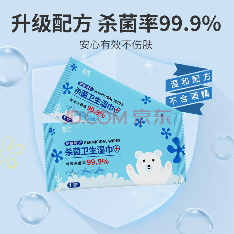 商品相册:粒米消毒杀菌湿巾50片便携装出差旅行儿童上学卫生湿巾无酒精消毒棉片第