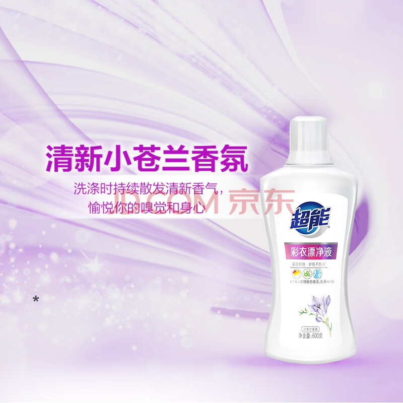 商品相册:超能彩衣漂净液 1.2斤 小苍兰香 护色不伤衣 深层瓦解污渍第