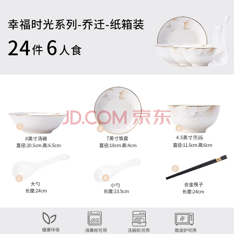 商品相册:浩雅釉中彩24头碗碟套装景德镇餐具陶瓷碗具家用乔迁送礼幸福时光第