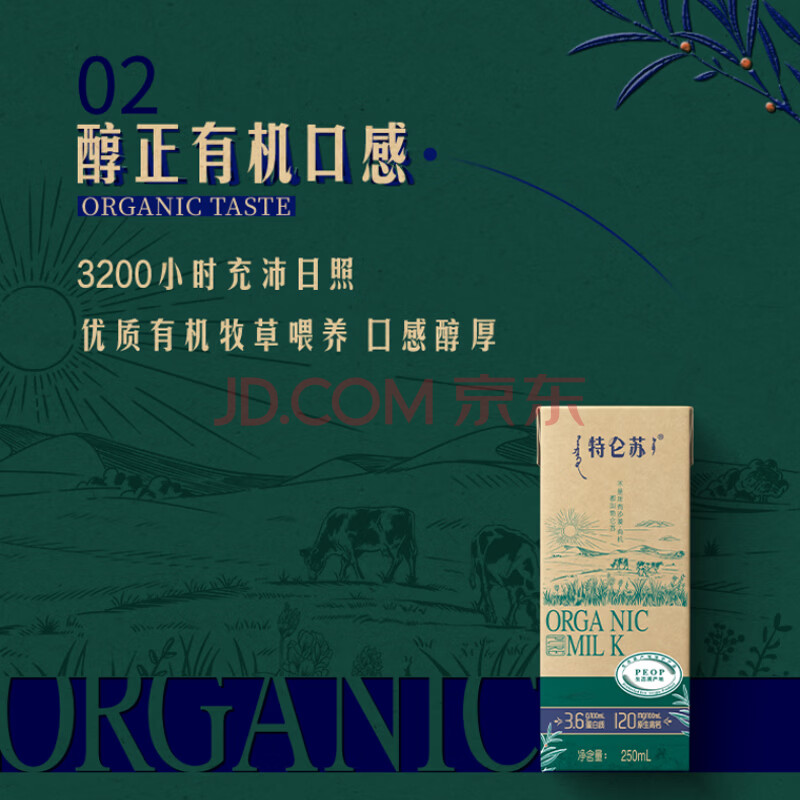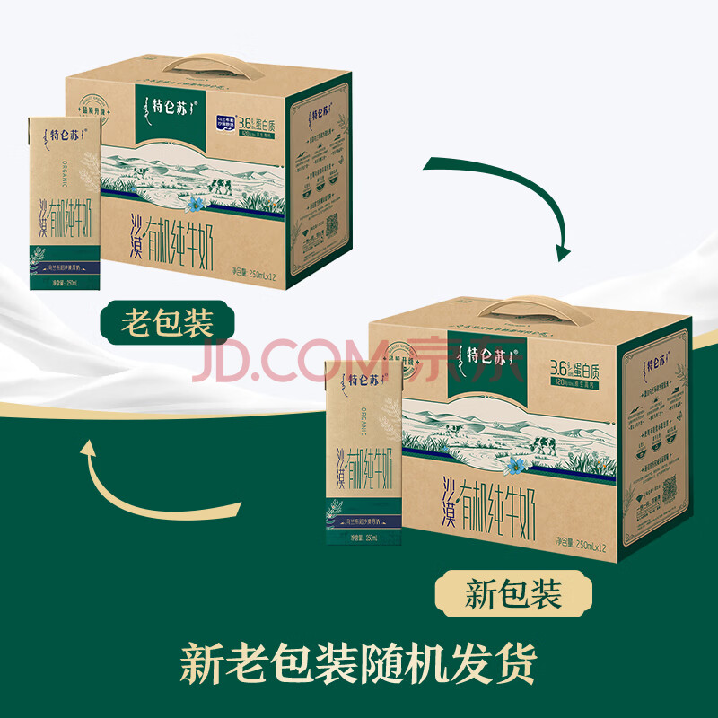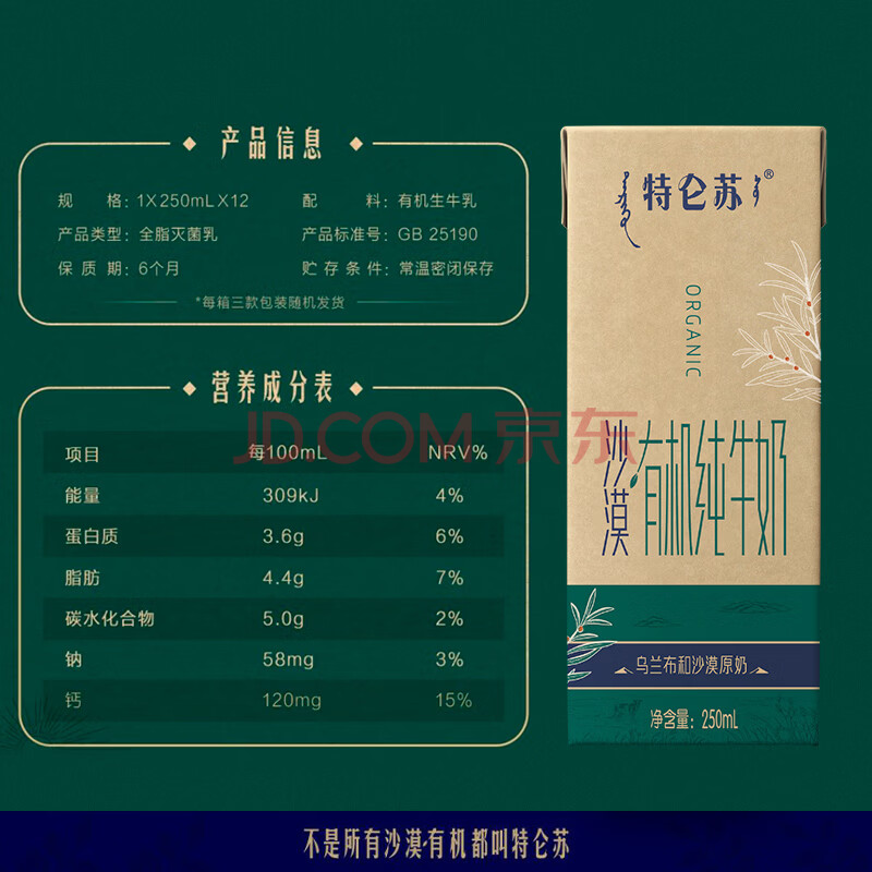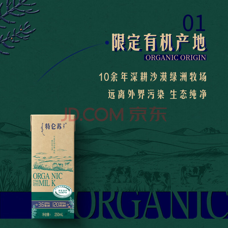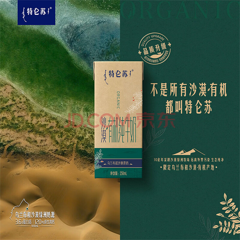商品相册:蒙牛特仑苏沙漠有机纯牛奶250ml*12盒 精美第1张/共8