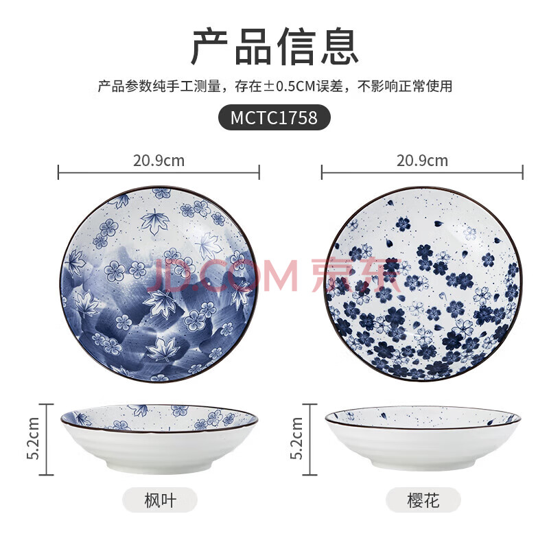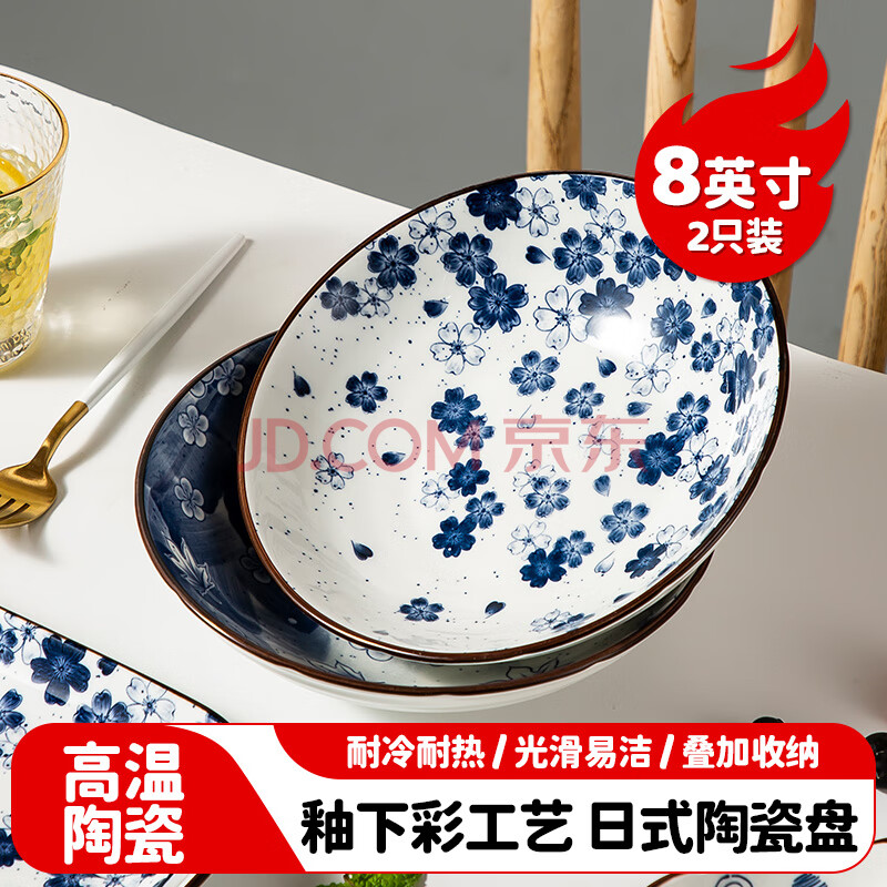 商品相册:美厨(maxcook)菜盘餐盘陶瓷餐具 8英寸2只装日式深盘碟子 西餐盘饺子盘MCTC1758第