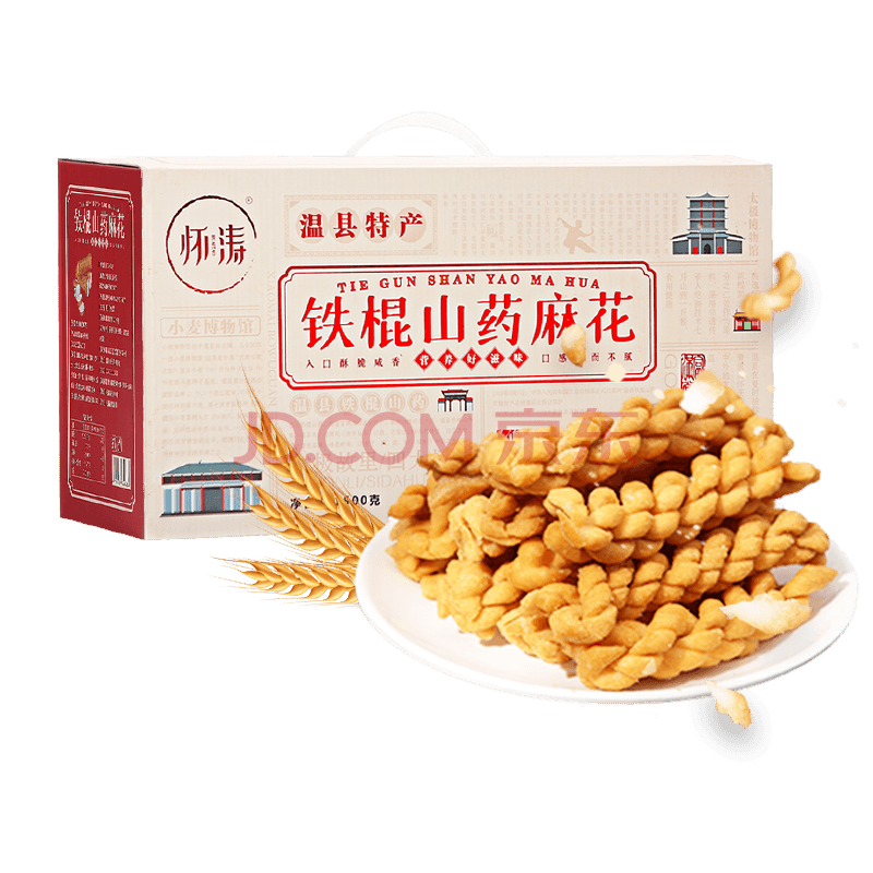 商品相册:怀涛温县铁棍山药麻花1500g 礼盒小麻花 中式点心休闲小零食饼干糕点第