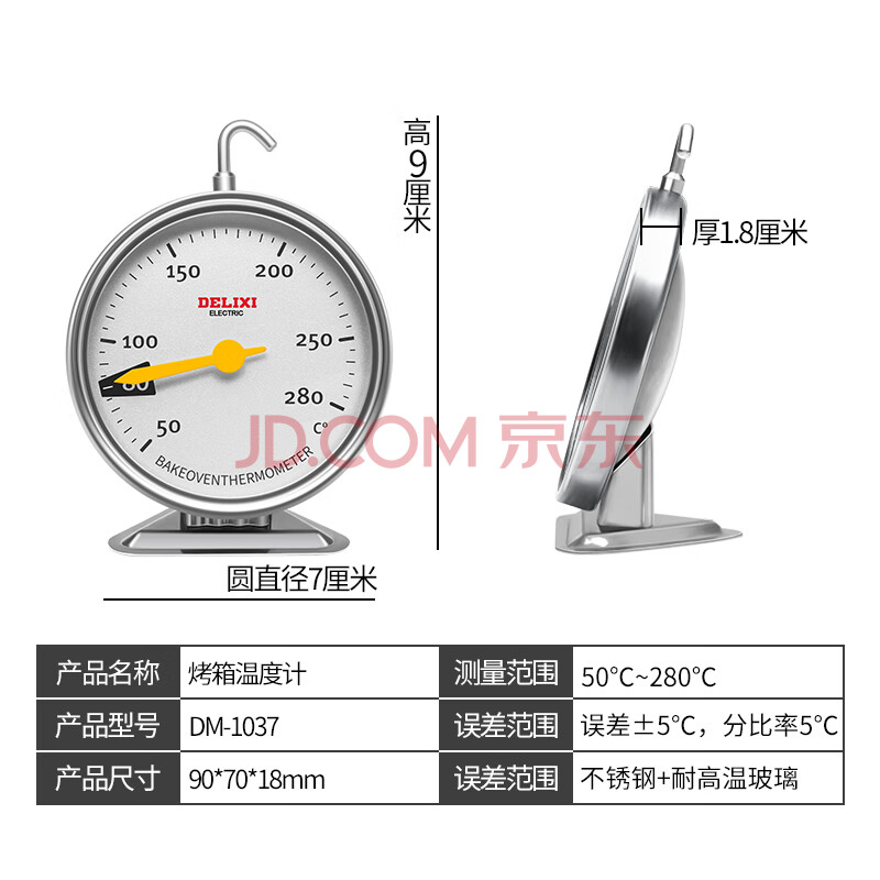 商品相册:德力西电气(DELIXI ELECTRIC)烤箱温度计悬挂式不锈钢耐高温家用精准测温烘焙工具 DM-1037第