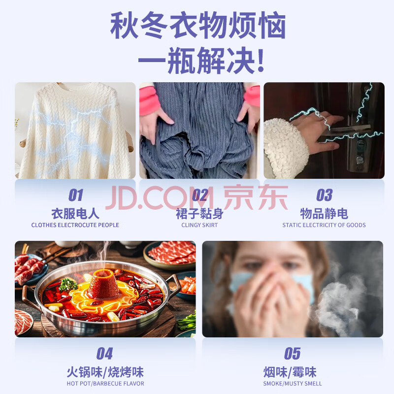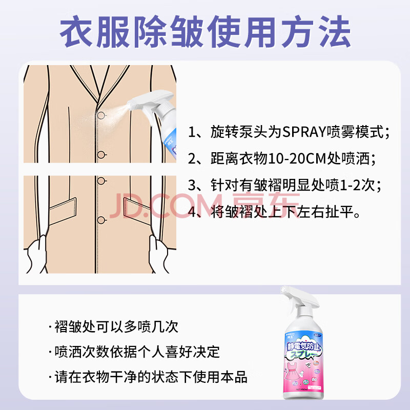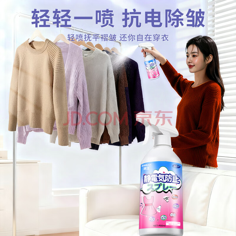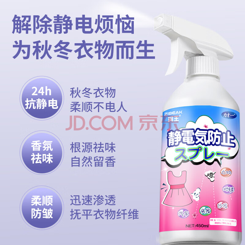 商品相册:珂王防静电喷雾450ml 衣服头发去静电除皱柔顺衣物香氛除味喷雾留香久第