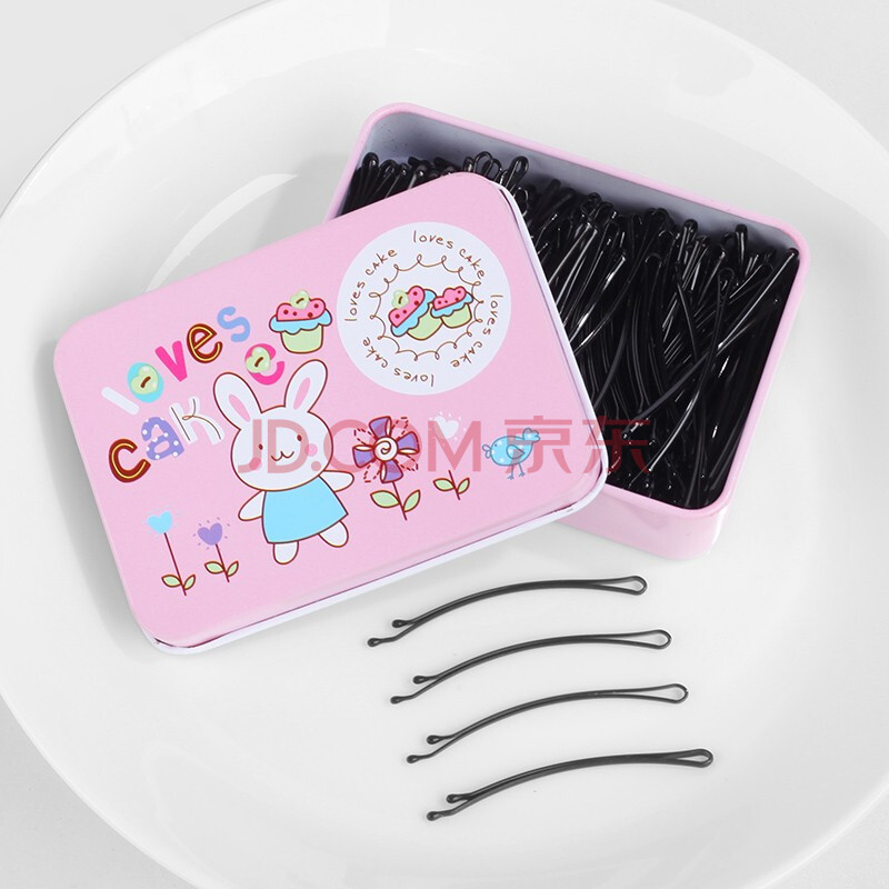 商品相册:遇上佳人 黑色发夹一字夹200根弯夹隐形发卡刘海边夹盘发铁碎发夹子铁盒装第