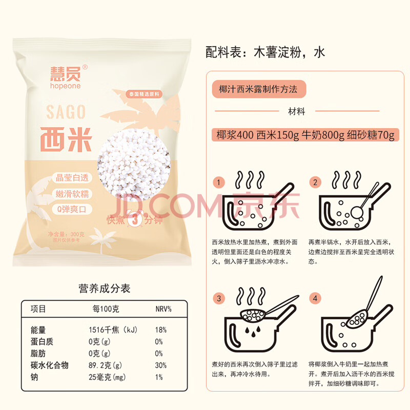 商品相册:慧员(hopeone)速煮小西米300g*2包 奶茶甜点椰浆西米露原料端午水晶粽子原料第