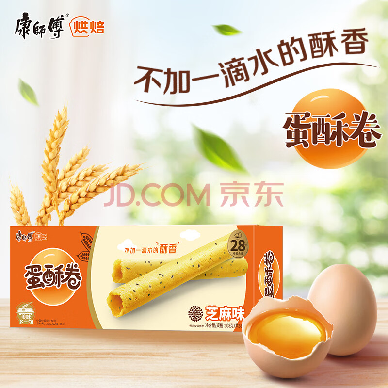 商品相册:康师傅 蛋酥卷芝麻味108g 饼干 鸡蛋卷 糕点休闲零食 早餐下午茶第