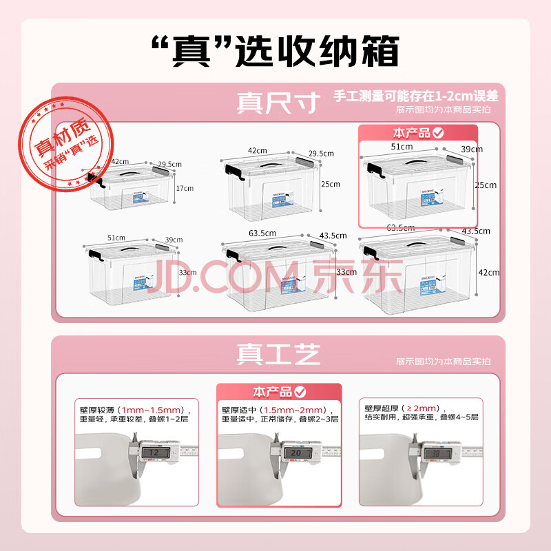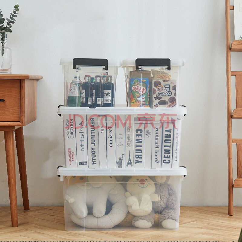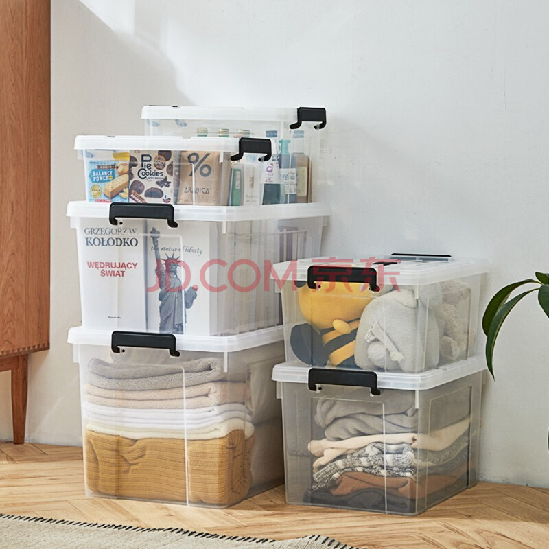商品相册:SPACEXPERT 衣物收纳箱特大号塑料整理箱车载储物箱35L透明 1个装 带提手第