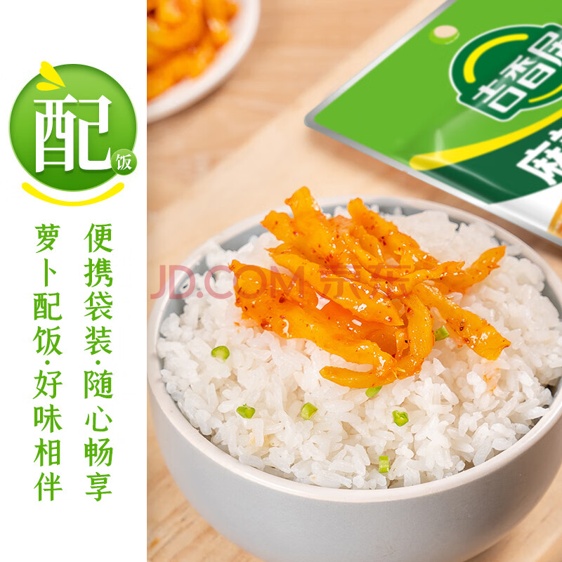 商品相册:吉香居榨菜 麻辣萝卜干 辣萝卜条 川式风味佐餐下饭咸菜 80g*5袋第1张/共4