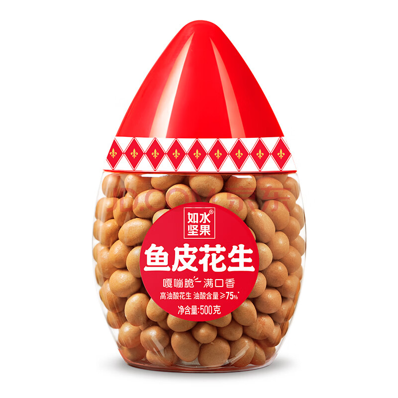 商品相册:如水 鱼皮花生500g/罐 网红休闲零食 配料干净 老少皆宜童年怀旧小吃第